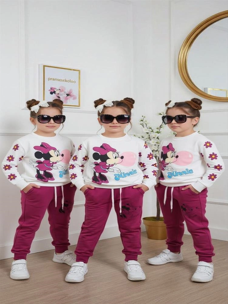 بلوز شلوار مینی موس رنگ بندی/ارغوانی و صورتی