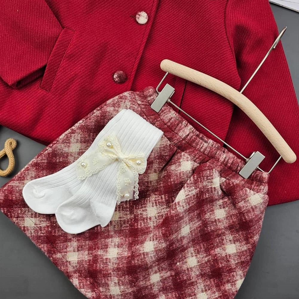 کت دامن قرمز چهارخانه