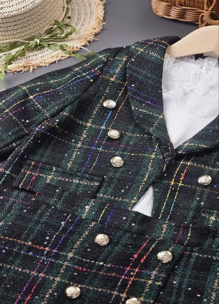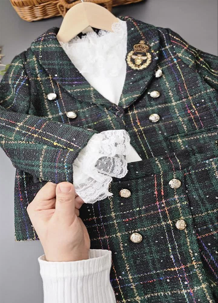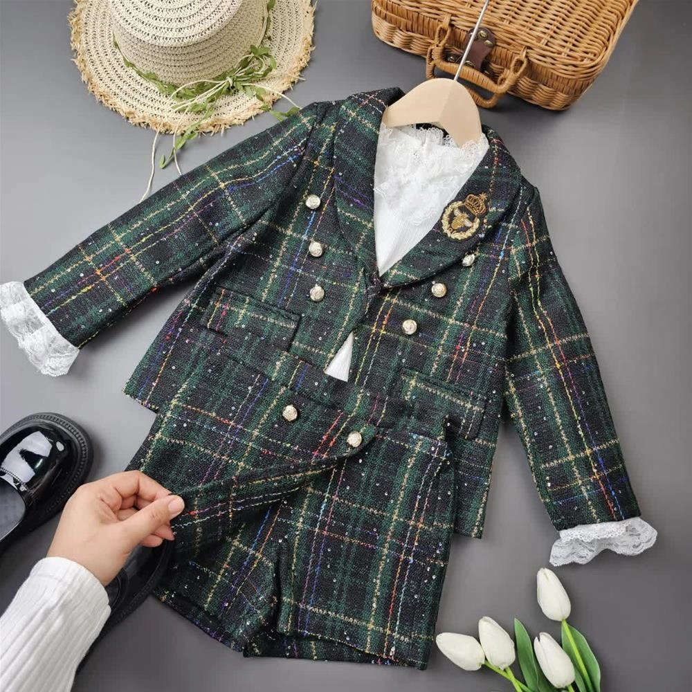 کت شلوارک شنل سبز پولکی